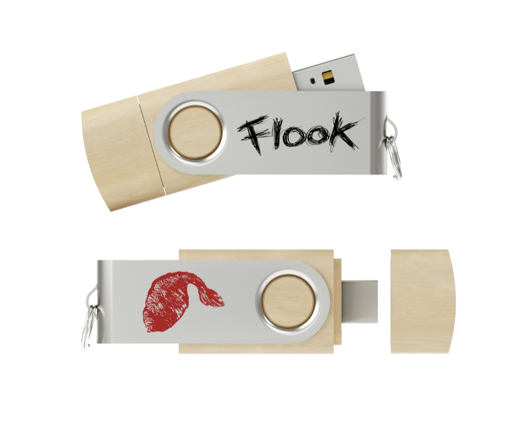 Quality USB drive in a light wood casing (double ended with both standard USB connector and USB-C connector) containing our first 4 studio albums, Flatfish, Rubai, Haven and Ancora. The drive contains all the music files in MP3 and WAV, the cover images, and the front and back cover detail.